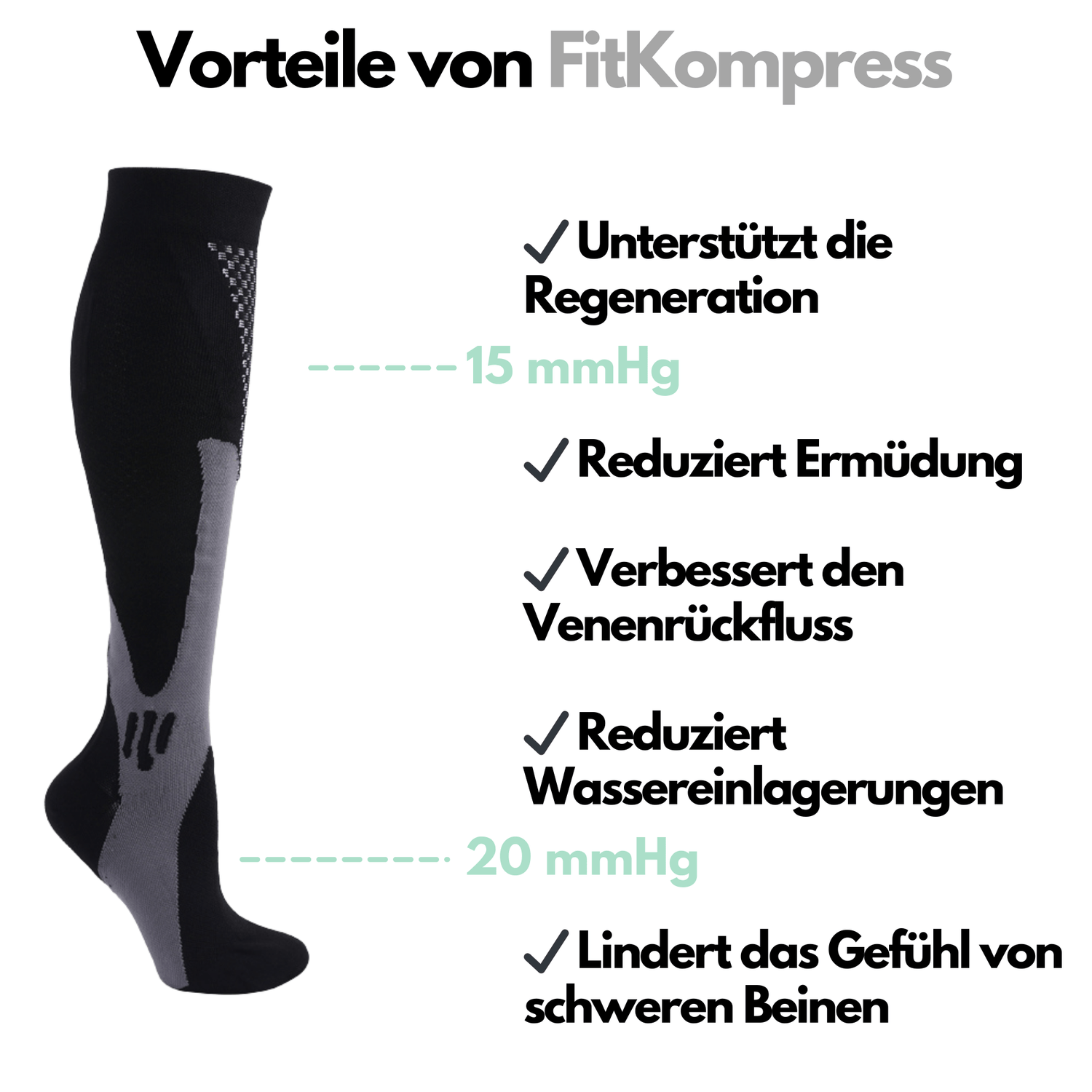 Die FitKompress-Strümpfe sind so konzipiert, dass sie zu den besten auf dem Markt gehören und gleichzeitig für mehr Komfort und ein dauerhaftes Wohlgefühl sorgen.